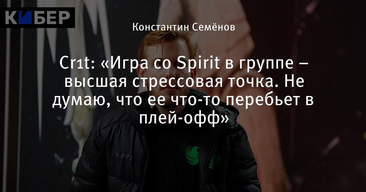 Cr1t: «Игра со Spirit в группе – высшая стрессовая точка. Не думаю, что ее что-то перебьет в плей-офф»