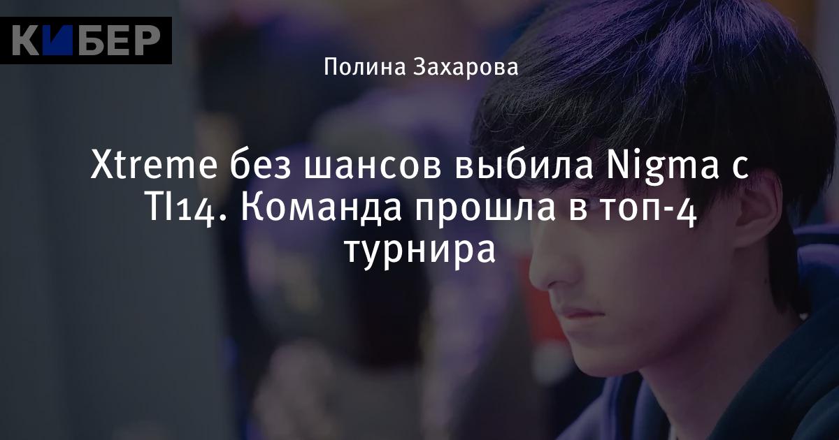 Xtreme выбила Nigma с TI14 со счетом 2:0. На первой карте Xtreme пикнула первых ЦК со Снайпером на этом турнире и победила с перевесом в 35 тысяч золота. Вторую карту Ван «Ame» Чуньюй закончил без смертей на Урсе, а счет составил 30:4 в пользу Xtreme. Перевес на последней карте – 38 тысяч золота.