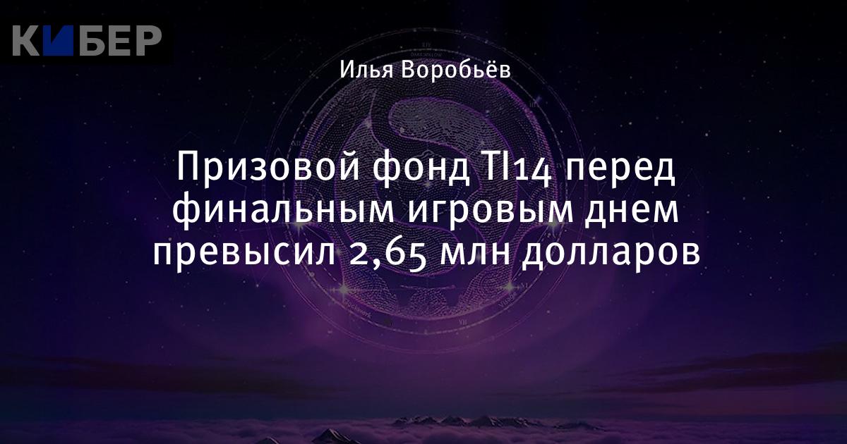 Призовой фонд TI14 перед финальным игровым днем превысил 2,65 млн долларов
