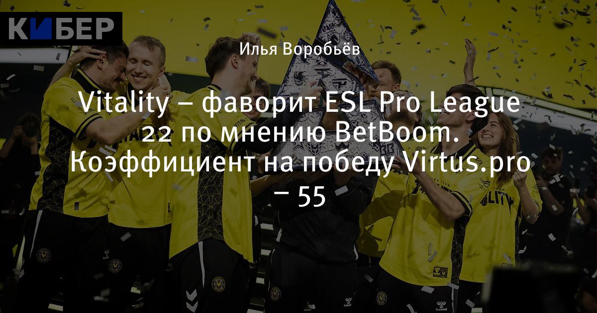 Vitality – фаворит ESL Pro League 22 по мнению BetBoom. Коэффициент на победу Virtus.pro – 55