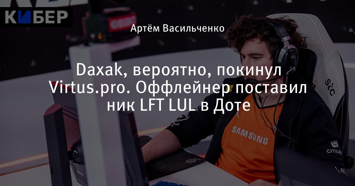 Никита «Daxak» Кузьмин мог покинуть состав Virtus.pro по Доте. Киберспортсмен играет паблики с ником LFT LUL (Кибер: ищу команду). Официального анонса от Virtus.pro про уход игрока на данный момент не было.