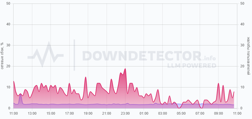 По данным сайтов «Сбой.рф» и Downdetector.su, за последний час поступают сообщения о проблемах в работе МТС из регионов: