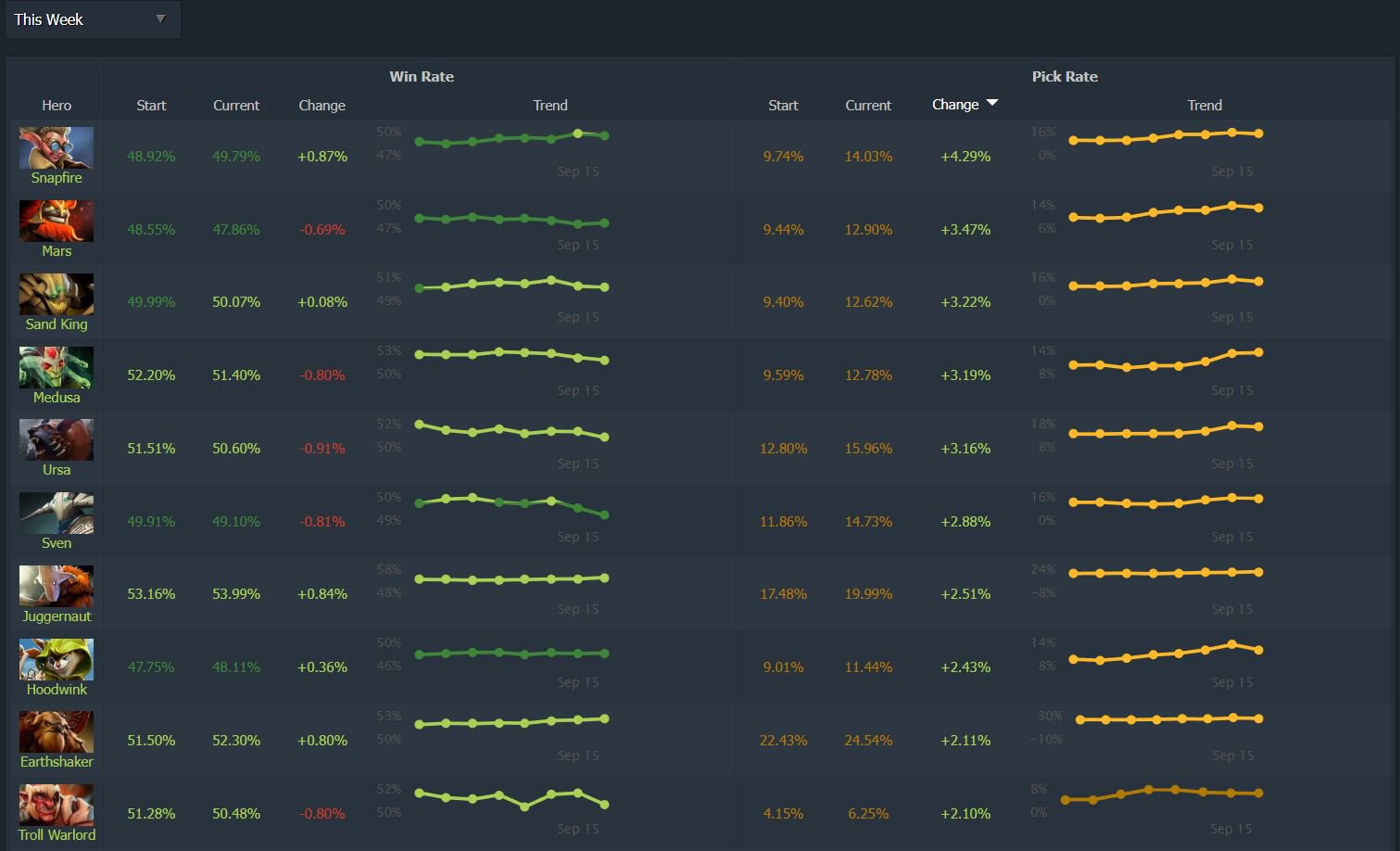 Пикрейт Снэпфаер вырос на 4 процентных пункта после TI14, Марса, СК, Медузы и Урсы – на 3
