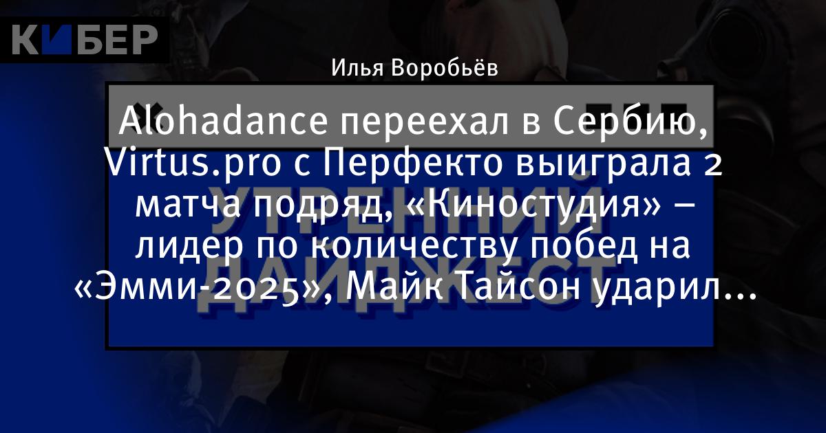 Alohadance переехал в Сербию, Virtus.pro с Перфекто выиграла 2 матча подряд, «Киностудия» – лидер по количеству побед на «Эмми-2025», Майк Тайсон ударил Мистера Биста в живот и другие новости утра