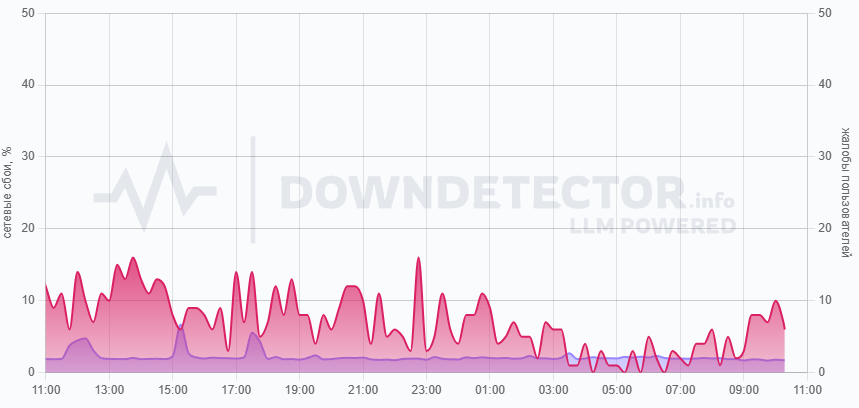 По данным сайтов «Сбой.рф» и Downdetector.su, за последний час поступают сообщения о проблемах в работе МТС из регионов: