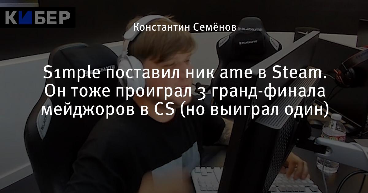 S1mple поставил ник ame в Steam. Он тоже проиграл 3 гранд-финала мейджоров в CS (но выиграл один)