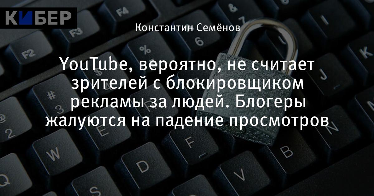 YouTube, вероятно, не считает зрителей с блокировщиком рекламы за людей. Блогеры жалуются на падение просмотров