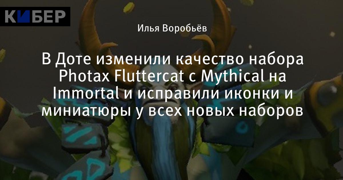 В Доте изменили качество набора Photax Fluttercat с Mythical на Immortal и исправили иконки и миниатюры у всех новых наборов