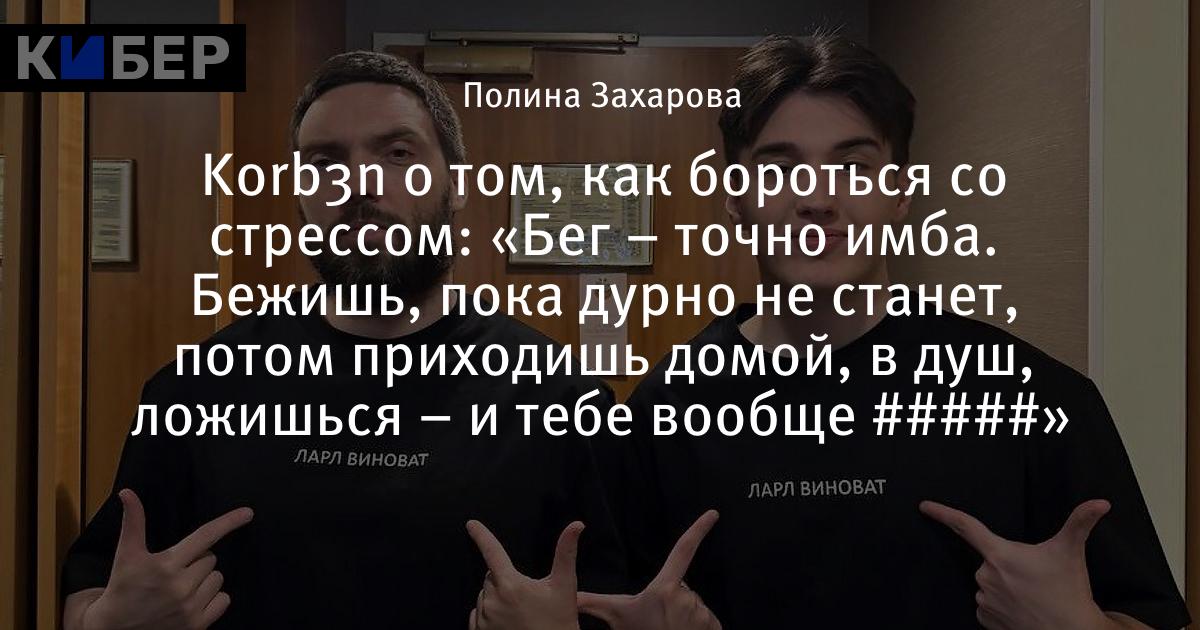 Korb3n о том, как бороться со стрессом: «Бег – точно имба. Бежишь, пока дурно не станет, потом приходишь домой, в душ, ложишься – и тебе вообще #####»