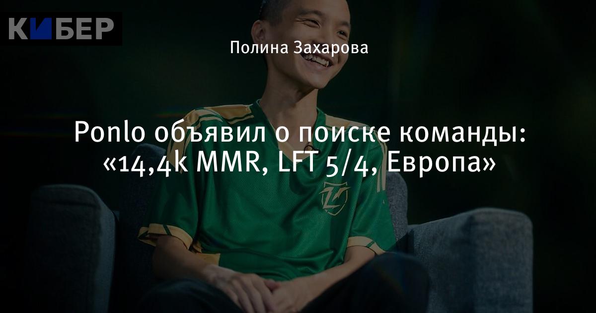Ponlo объявил о поиске команды: «14,4k MMR, LFT 5/4, Европа»