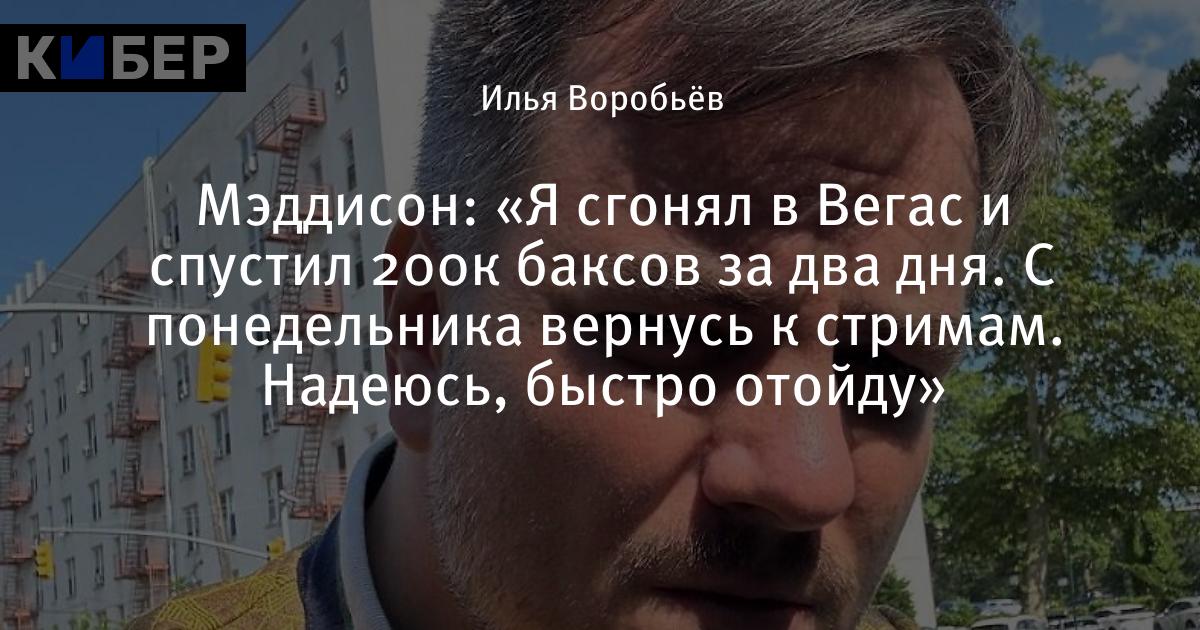 Мэддисон: «Я сгонял в Вегас и спустил 200к баксов за два дня. С понедельника вернусь к стримам. Надеюсь, быстро отойду»