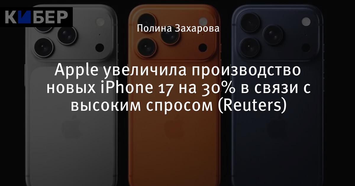 Apple увеличила производство новых iPhone 17 на 30% в связи с высоким спросом (Reuters)