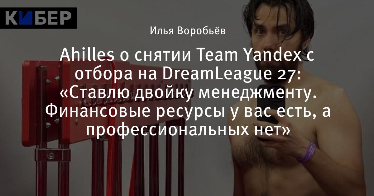Ahilles о снятии Team Yandex с отбора на DreamLeague 27: «Ставлю двойку менеджменту. Финансовые ресурсы у вас есть, а профессиональных нет»