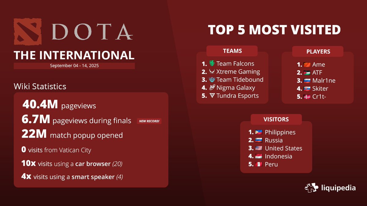 Всего страницу The International 2025 на «Ликвипедии» посмотрели более 40 млн раз за время турнира. За финал ее посетили 6,7 мл раз.