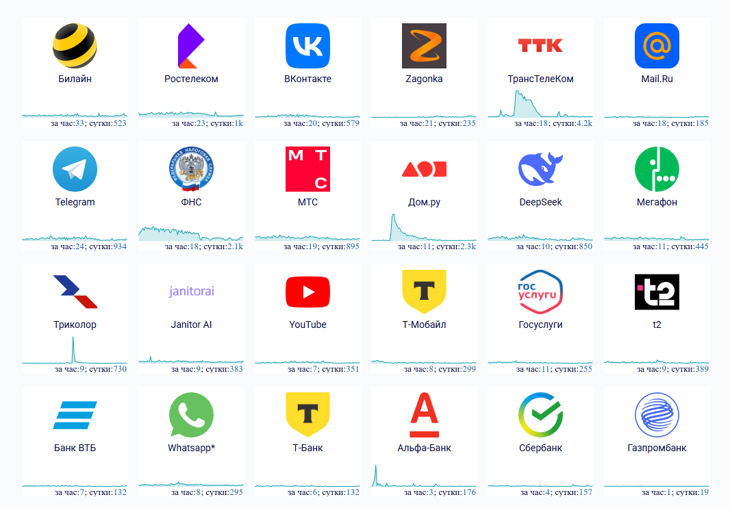 Россияне дальше сталкиваются с ошибкой интернета или сбоем некоторых интернет-сервисов. По состоянию на утро, 25 сентября, больше всего жалоб поступает от абонентов «Билайна», МТС и «Мегафона». Также проблемы испытывают абоненты провайдера «Ростелеком».
