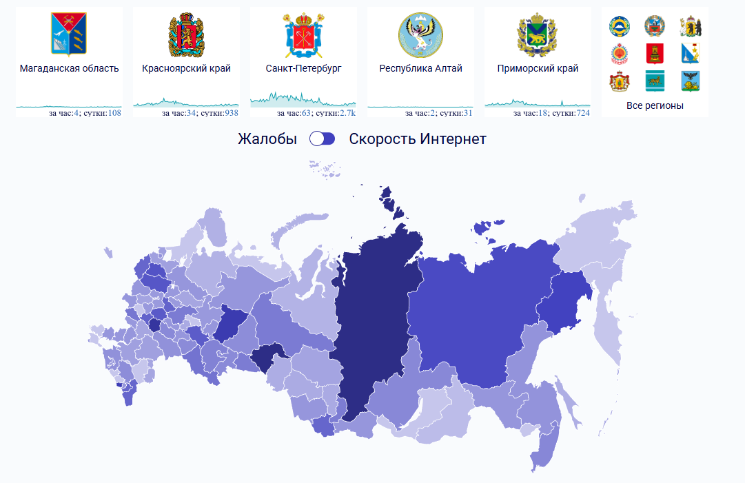 По областям на проблемы в основном жалуются жители Санкт-Петербурга, Республики Татарстан и Свердловской области. Данные взяты с сайта «Сбой.рф». Downdetector.su также подтверждает увеличившееся количество жалоб на сбои и проблемы в Красноярском крае.