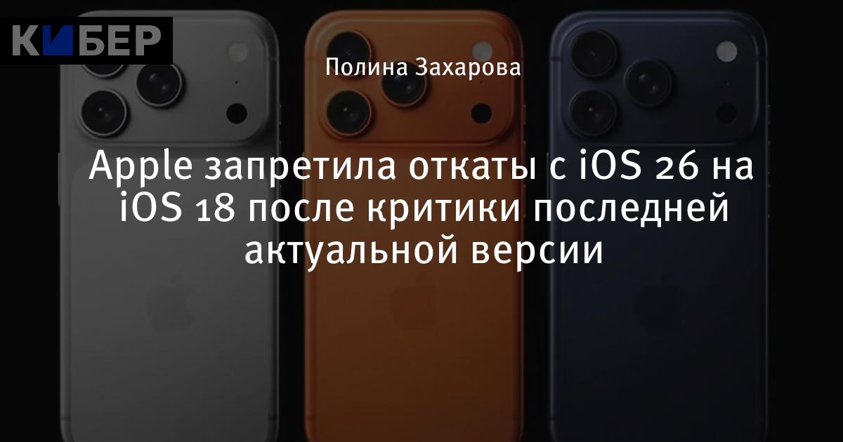 Apple запретила откаты с iOS 26 на iOS 18 после критики последней актуальной версии