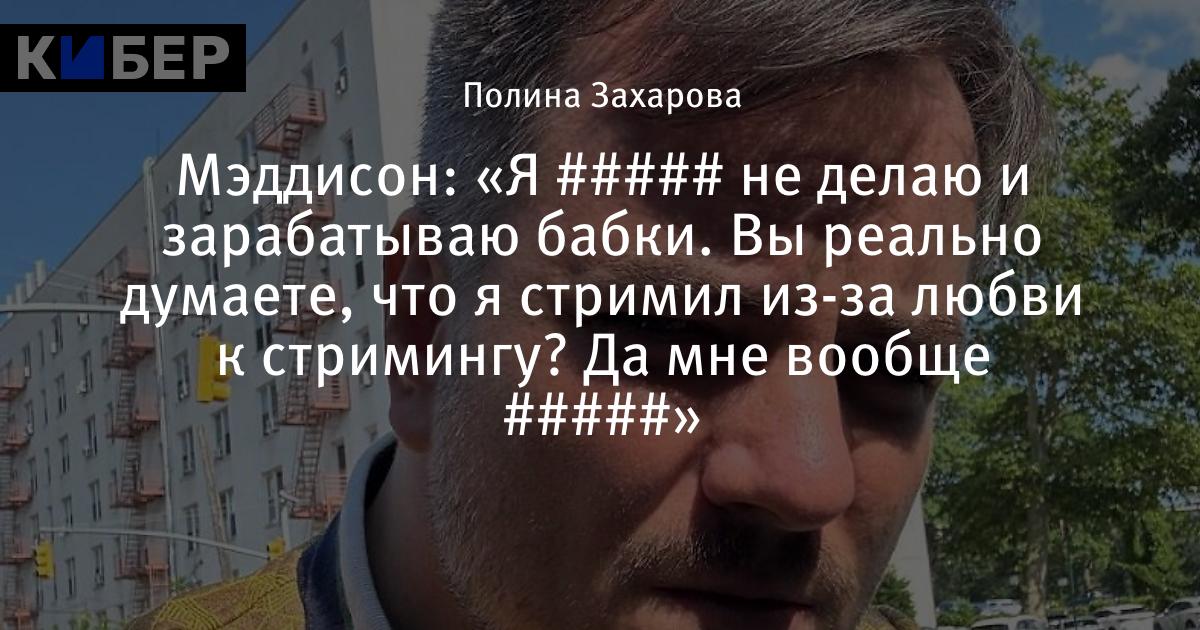 Мэддисон: «Я ##### не делаю и зарабатываю бабки. Вы реально думаете, что я стримил из-за любви к стримингу? Да мне вообще #####»