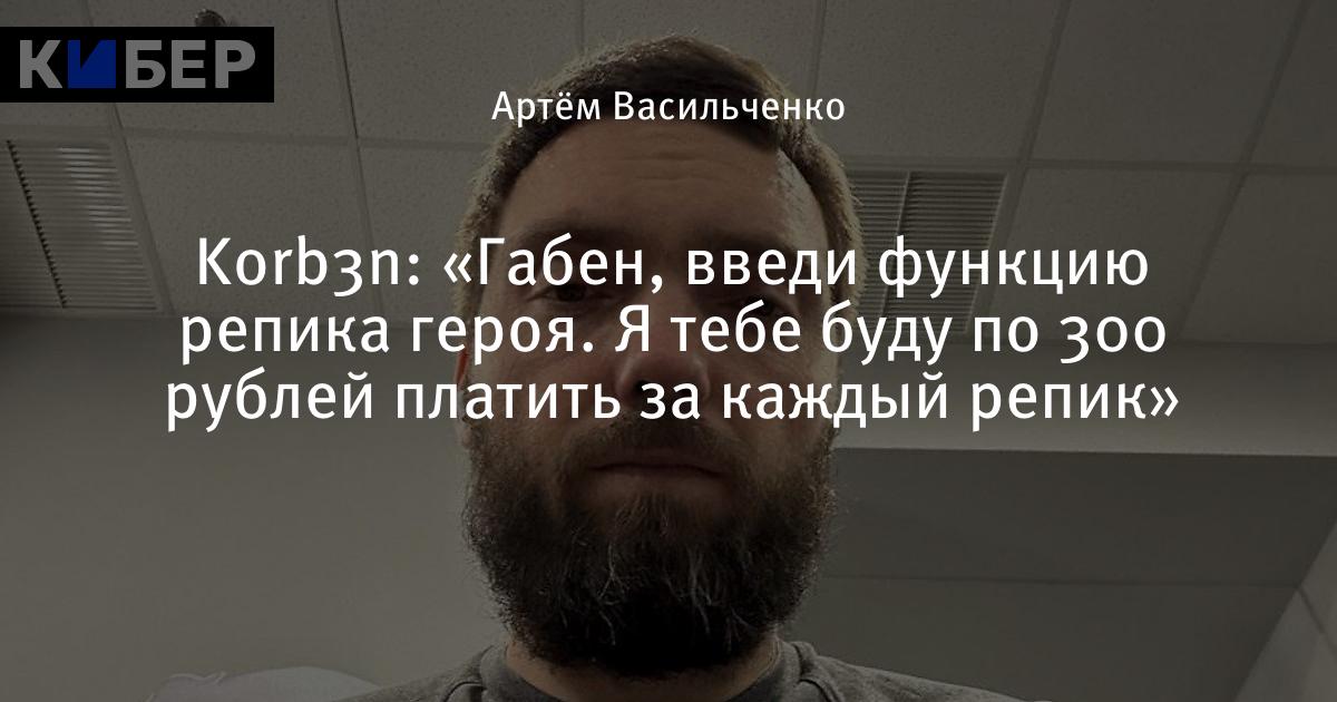 Korb3n: «Габен, введи функцию репика героя. Я тебе буду по 300 рублей платить за каждый репик»