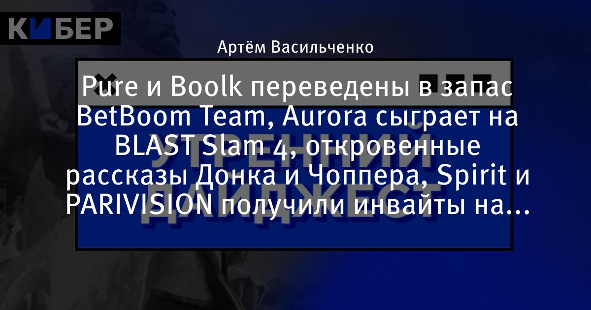 Pure и Boolk переведены в запас BetBoom Team, Aurora сыграет на BLAST Slam 4, откровенные рассказы Донка и Чоппера, Spirit и PARIVISION получили инвайты на FISSURE Playground 2 и другие новости утра