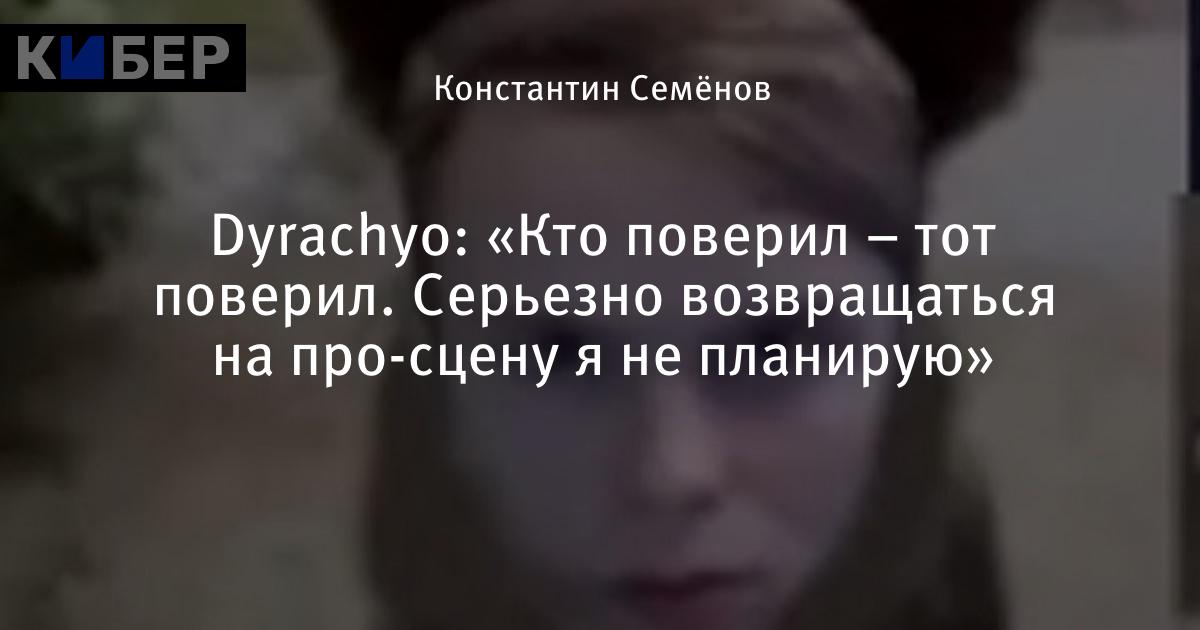 Dyrachyo: «Кто поверил – тот поверил. Серьезно возвращаться на про-сцену я не планирую»