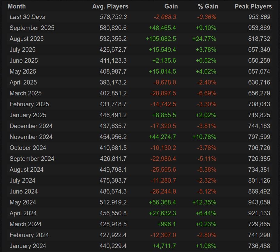 Пиковый онлайн в сентябре составил 953 869 человек – на 135 тысяч выше показателя августа и на 296 тысяч выше показателя июля.