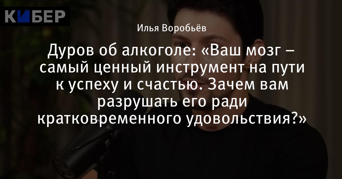 Дуров об алкоголе: «Ваш мозг – самый ценный инструмент на пути к успеху и счастью. Зачем вам разрушать его ради кратковременного удовольствия?»