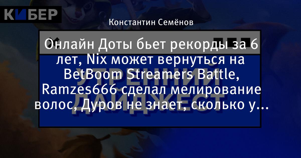Онлайн Доты бьет рекорды за 6 лет, Nix может вернуться на BetBoom Streamers Battle, Ramzes666 сделал мелирование волос, Дуров не знает, сколько у него детей и другие новости утра