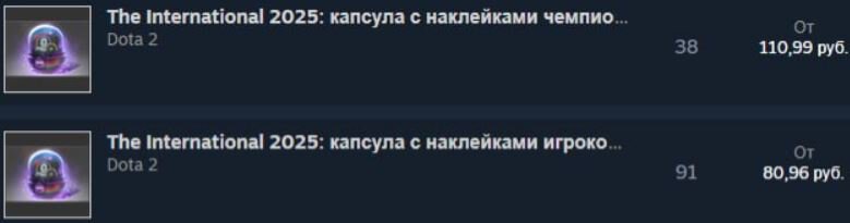 Капсула с наклейками игроков The International 2025 доступна на торговой площадке. Цена – от 80 до 110 рублей