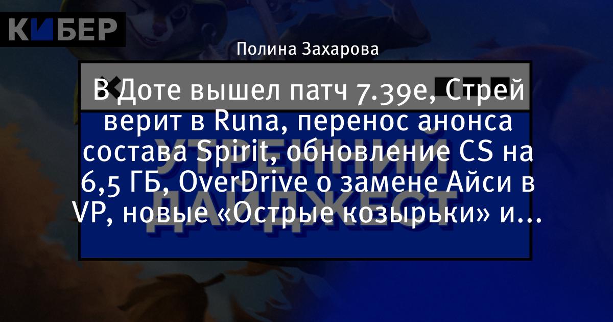 В Доте вышел патч 7.39е, Стрей верит в Runa, перенос анонса состава Spirit, обновление CS на 6,5 ГБ, OverDrive о замене Айси в VP, новые «Острые козырьки» и «Убить билла» и другие новости утра