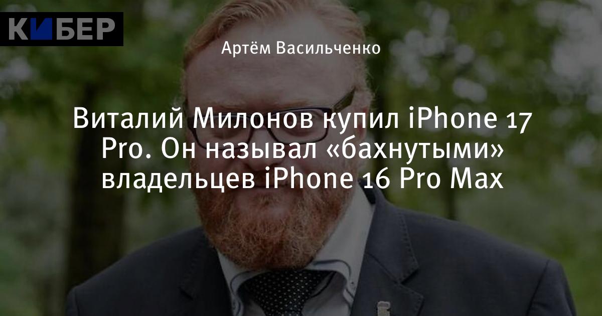 Виталий Милонов в прошлом году заявлял, что только «бахнутые» купят себе iPhone 16 Pro Max за 400 тысяч рублей. На данный момент iPhone 17 Pro можно приобрести за 105 тысяч рублей на российских маркетплейсах.