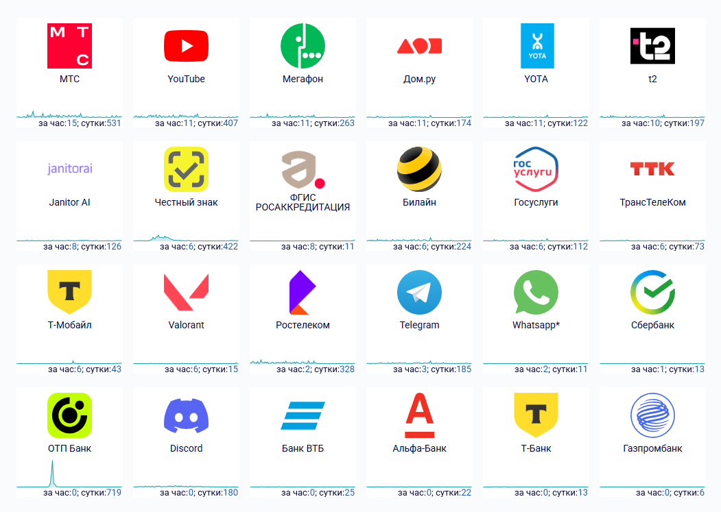 Россияне дальше сталкиваются с ошибкой интернета или сбоем некоторых интернет-сервисов. По состоянию на утро, 6 октября, больше всего жалоб поступает от абонентов МТС, «Мегафона» и Yota. Также проблемы испытывают абоненты провайдера «Дом.ру».
