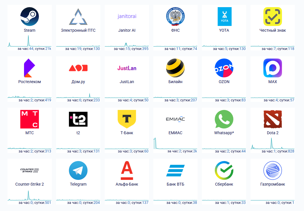 Россияне дальше сталкиваются с ошибкой интернета или сбоем некоторых интернет-сервисов. По состоянию на утро, 8 октября, больше всего жалоб поступает от абонентов Yota и «Билайна». Также проблемы испытывают абоненты провайдера «Ростелеком».