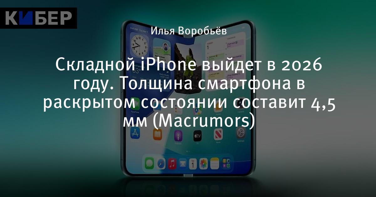 Складной iPhone выйдет в 2026 году. Толщина смартфона в раскрытом состоянии составит 4,5 мм (Macrumors)