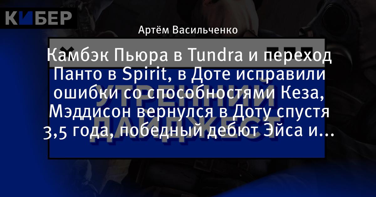 Камбэк Пьюра в Tundra и переход Панто в Spirit, в Доте исправили ошибки со способностями Кеза, Мэддисон вернулся в Доту спустя 3,5 года, победный дебют Эйса и Тофу за Liquid и другие новости утра