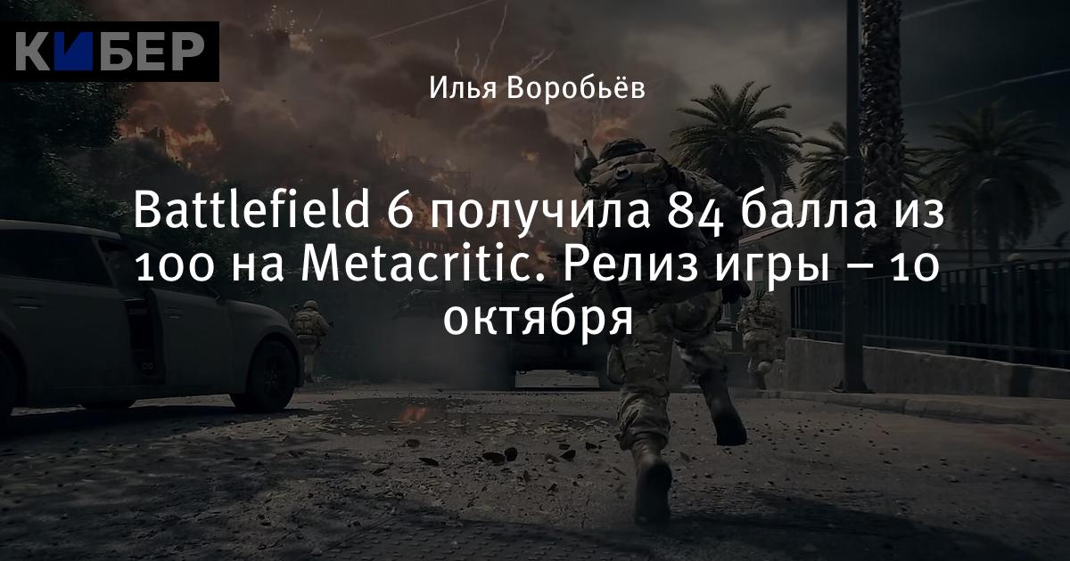 Battlefield 6 получила 84 балла из 100 на Metacritic. Релиз игры – 10 октября