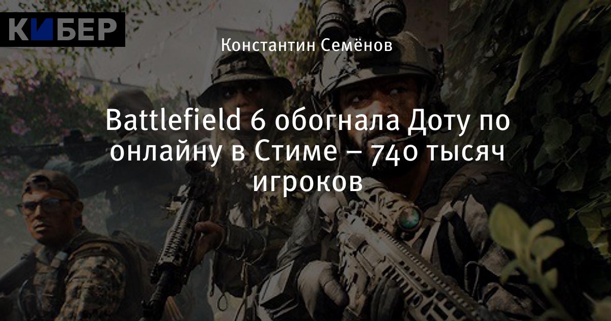 Релиз шутера состоялся 10 октября. На момент публикации новости онлайн Battlefield 6 в Стиме составляет 740 тысяч игроков – на 1 тысячу больше, чем в Доте.