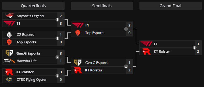 - 10:00 Gen.G 1:3 KT Rolster / полуфинал