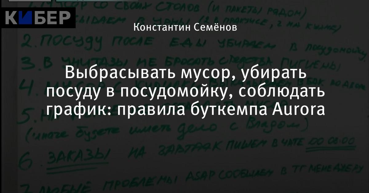 Выбрасывать мусор, убирать посуду в посудомойку, соблюдать график: правила буткемпа Aurora