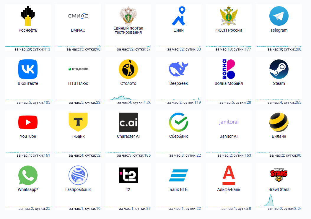 Среди сервисов и приложений утром, 13 октября, массовые сбои наблюдаются в работе Роснефти и ЕМИАС.
