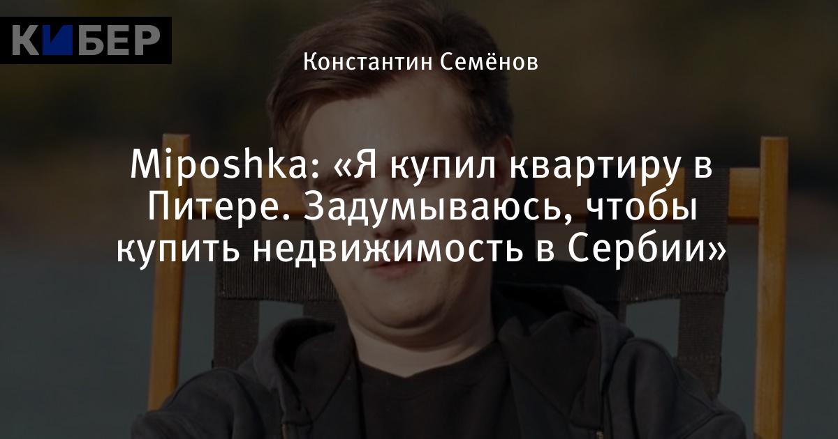 Miposhka: «Я купил квартиру в Питере. Задумываюсь, чтобы купить недвижимость в Сербии»