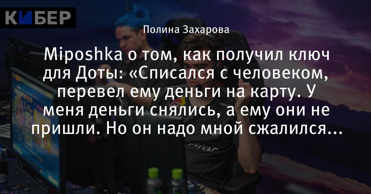 Miposhka о том, как получил ключ для Доты: «Списался с человеком, перевел ему деньги на карту. У меня деньги снялись, а ему они не пришли. Но он надо мной сжалился и просто так ключ дал»