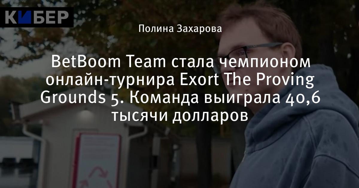 В финале Exort The Proving Grounds 5 команда Кирилла «Boombl4» Михайлова победила Sinners со счетом 2-0 (16:14 на Nuke, 13:6 на Mirage). За первое место в онлайн-турнире BetBoom Team получила 40,6 тысячи долларов.