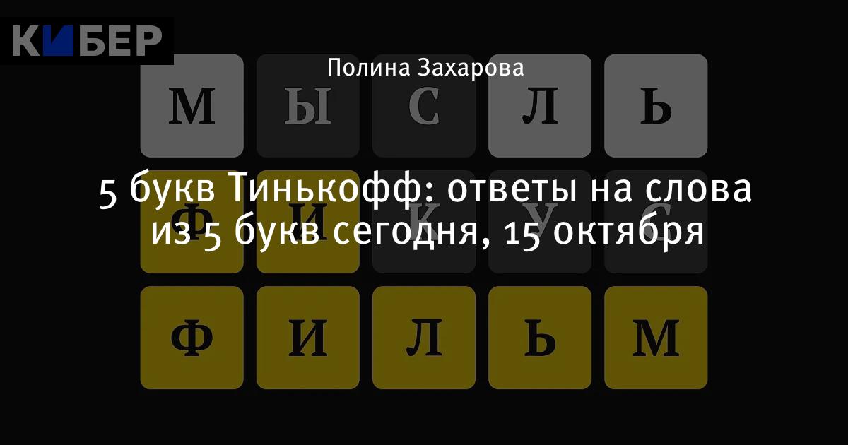 5 букв Тинькофф: ответы на слова из 5 букв сегодня, 15 октября