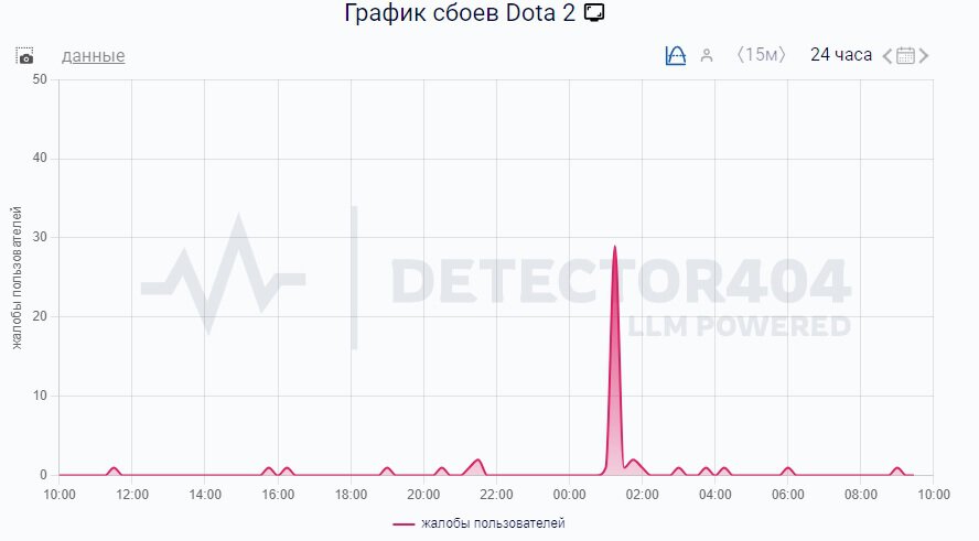 Согласно Downdetector, на сбой в Доте 2 сегодня жалуются жители Московской области. Всего за сутки на проблемы с игрой пожаловались 48 раз.