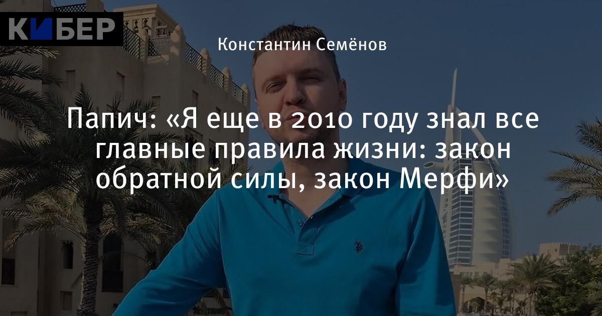 Папич: «Я еще в 2010 году знал все главные правила жизни: закон обратной силы, закон Мерфи»