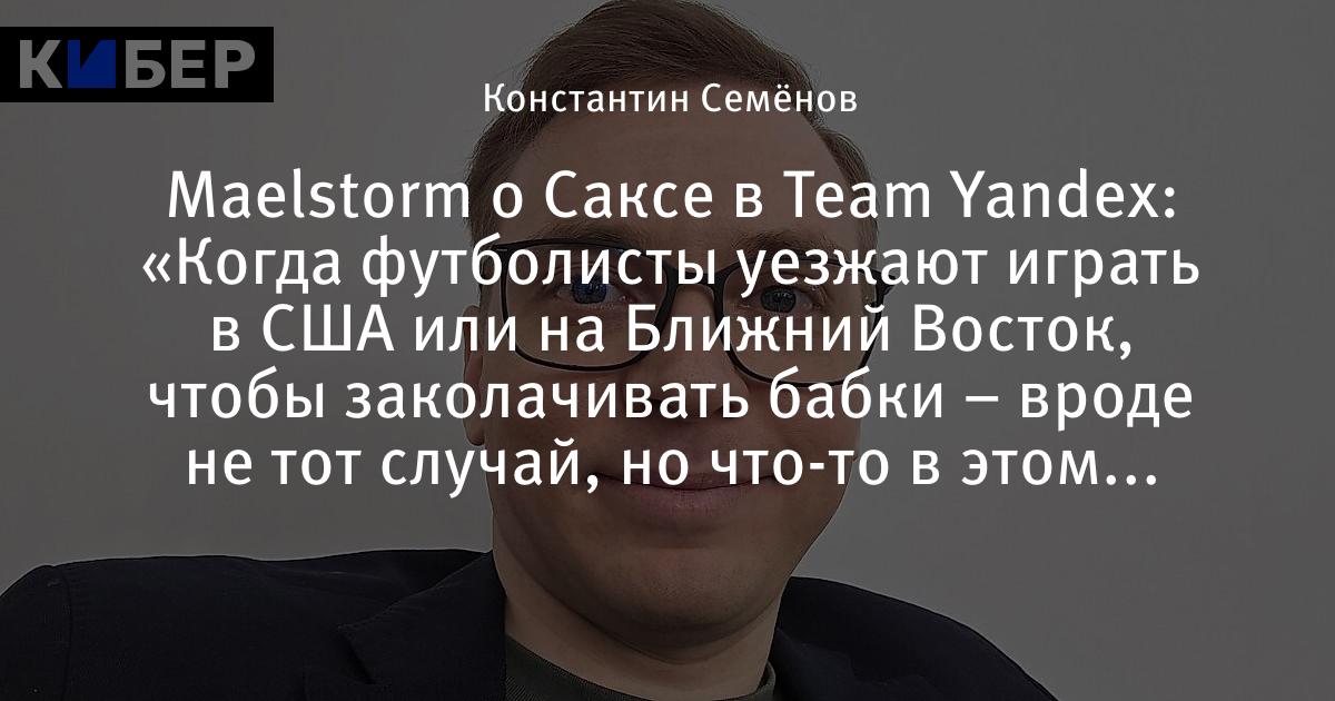 Maelstorm о Саксе в Team Yandex: «Когда футболисты уезжают играть в США или на Ближний Восток, чтобы заколачивать бабки – вроде не тот случай, но что-то в этом есть»