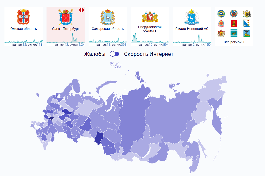 По областям на проблемы в основном жалуются жители Пермского края, Челябинской области и Омской области. Данные взяты с сайта «Сбой.рф». Downdetector.su также подтверждает увеличившееся количество жалоб на сбои и проблемы в Санкт-Петербурге.