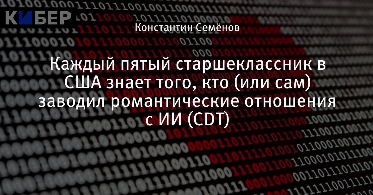 Каждый пятый старшеклассник в США знает того, кто (или сам) заводил романтические отношения с ИИ (CDT)