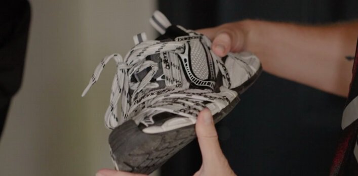 «Balenciaga lace‑up Logo Sneakers – последние, которые я купил. Не знаю, они мне просто понравились, и все. Они более-менее сильно выглядят, мне нравятся веревочки. 1050 долларов [стоили].